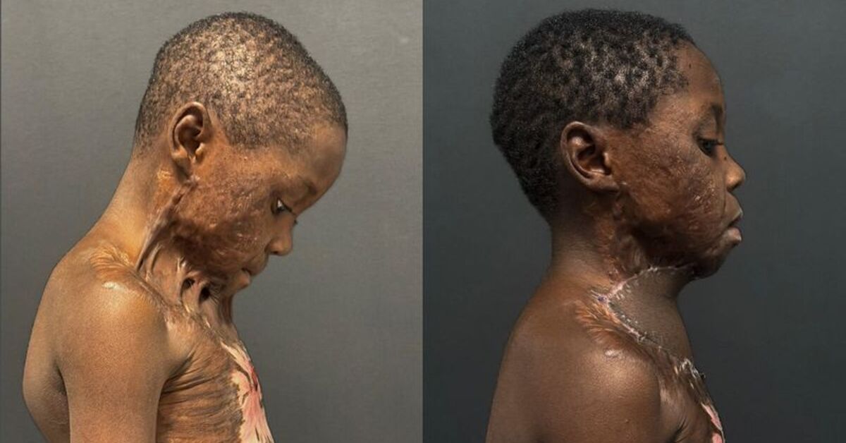 Yanık sebebiyle boyun bölgesinde ciddi hasar meydana gelen Teme, kafasını dahi kaldıramaz hale geldi. Tedavi için Kamerun’dan Türkiye’ye ailesiyle gelen Teme’yi Plastik ve Rekonstrüktif Cerrahi Uzmanı Doç. Dr. Burak Özkan ve ekibi ameliyat etti. Operasyona ilişkin konuşan Doç. Dr. Özkan, “Yanık kontraktürleri (ikinci veya üçüncü derece yanıktan sonra cildin sıkılaşması) yaranın iyileşmesiyle hastanın hareketini bozan ve yaşam kalitesini etkileyen durumlardır. Özellikle boyun bölgesindeki kontraktür, hastanın başını boynundan kısaltarak çenesini gövdeye yapıştırmış ve başını yukarı kaldırmasını engellemişti. Ayrıca tükürük salgısının gövdesine akmasına sebep olan , hastanın konuşmasını engelleyen hatta göz kapaklarını aşağıya çeken güçlü bir kontraktür bantlarına sahipti” dedi.